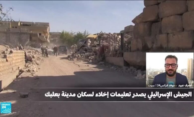 أصدر الجيش الإسرائيلي الأربعاء إنذارا بالإخلاء لسكان مدينة بعلبك وقريتين تابعتين للمحافظة الواقعة في شرق لبنان، محذرا من ضرب أهداف تابعة لحزب الله في المنطقة.