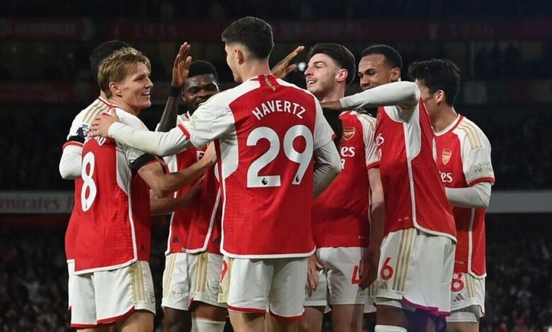 تغلب أرسنال، الذي يسعى بلا هوادة للبقاء منافسا على لقب الدوري الإنكليزي الممتاز لكرة القدم، 5-صفر على غريمه اللندني تشيلسي اليوم الثلاثاء، ليبتعد بفارق ثلاث نقاط في صدارة الترتيب. وسجل البلجيكي لياندرو تروسار (4) وبن وايت (52 و70) والألماني كاي هافيرتس (57 و65) الأهداف.