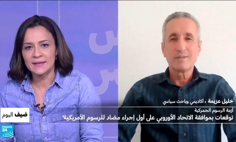 المفوضية الأوروبية تبحث سبل الرد على الرسوم الجمركية الأمريكية الجديدة التي تدخل حيز التنفيذ اليوم. هل تأخر الاتحاد الأوروبي في الاعلان عن إجراءات مضادة للرسوم الأمريكية؟ هل مازال باب التفاوض مع الولايات المتحدة مفتوحا؟ ضيف اليوم الأكاديمي والباحث السياسي من برلين خليل عزيمة.