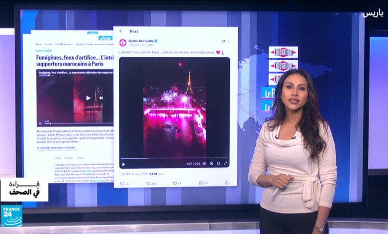 في عناوين الصحف اليوم: زيارة “تاريخية” للرئيس السوري الانتقالي أحمد الشرع إلى البيت الأبيض واتفاق أمني محتمل لمكافحة تنظيم الدولة الإسلامية وتقارب في العلاقات بين سوريا وإسرائيل – جدل حول قانونية بقاء الرئيس الفرنسي الأسبق “نيكولا ساركوزي” في السجن رغم طعنه في الحكم – ذكرى مرور عشر سنوات على هجمات ال13 من نوفمبر في باريس – جدل في فرنسا بسبب احتفال رابطة مشجعي نادي الوداد المغربي بالشماريخ والألعاب النارية في قلب باريس من دون علم الشرطة.