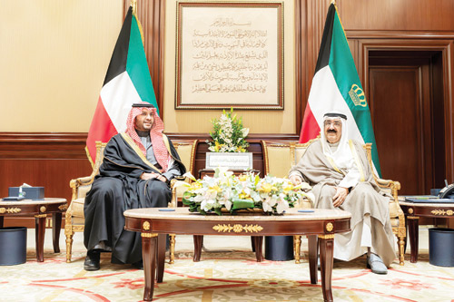 استقبل صاحب السمو الشيخ مشعل الأحمد الجابر الصباح، أمير دولة الكويت، في قصر بيان، أمس، صاحب السمو الملكي الأمير تركي بن محمد بن فهد بن عبدالعزيز وزير الدولة عضو مجلس الوزراء والوفد المرافق له.