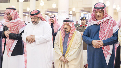 أمير منطقة الرياض يؤدي الصلاة على والدة الأميرة فهدة بنت فهد