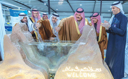 دشن صاحب السمو الملكي الأمير عبد العزيز بن سعد بن عبد العزيز أمير منطقة حائل أمس مركز التميز لإنتاج السلمون بحائل التابع لوزارة البيئة والمياه والزراعة ممثلة بـ «البرنامج الوطني لتطوير قطاع الثروة الحيوانية والسمكية»، بحضور معالي نائب وزير البيئة والمياه والزراعة المهندس منصور