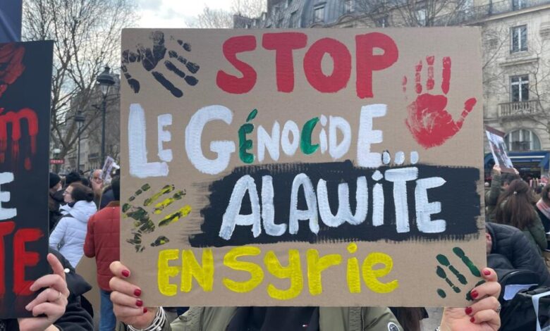 “أوقفوا المجازر وإبادة العلويين”… صرخة سوريين بفرنسا إلى السلطة الجديدة في دمشق