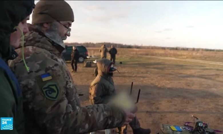 خلف خطوط المواجهة يقوم الجيش الأوكراني بتدريب المدنيين على الدفاع على المجال الجوي الأوكراني بواسطة استعمال طائرات مسيرة اعتراضية لمواجهة المسيرات الروسية وتحطيمها.