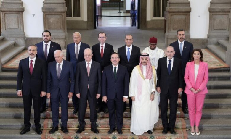 احتضنت العاصمة الإسبانية مدريد الجمعة اجتماعا لوزراء من دول إسلامية وأوروبية إلى جانب مسؤول الشؤون الخارجية في الاتحاد الأوروبي لمناقشة كيفية المضي قدما نحو حل الدولتين في الصراع الإسرائيلي الفلسطيني. ويشار إلى أنه في نهاية مايو/أيار، اعترفت حكومة سانشيز، إلى جانب كلّ من إيرلندا والنرويج، بدولة فلسطين، في خطوة أثارت غضب إسرائيل.