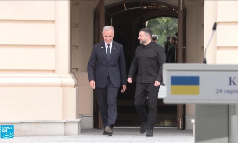 احتفل الرئيس الأوكراني فولوديمير زيلينسكي بعيد استقلال بلاده الـ34 إلى جانب رئيس الوزراء الكندي مارك كارني الذي أكد أن كييف ستحصل الشهر المقبل على مساعدات عسكرية بأكثر من مليار دولار كندي (723 مليون دولار) ضمن حزمة أُعلنت في وقت سابق.