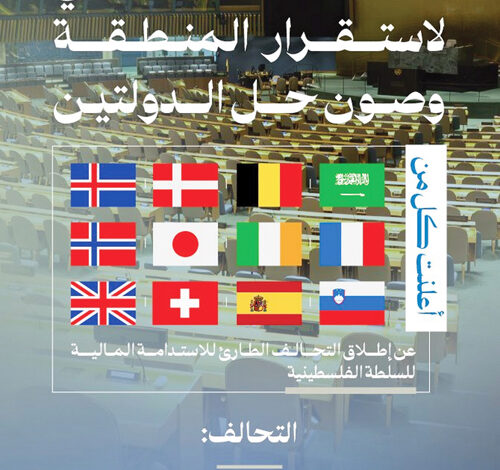 أعلنت أمس كل من المملكة العربية السعودية وبلجيكا والدنمارك وفرنسا وآيسلندا وإيرلندا واليابان والنرويج وسلوفينيا وإسبانيا وسويسرا والمملكة المتحدة عن إطلاق التحالف الطارئ للاستدامة المالية للسلطة الفلسطينية.