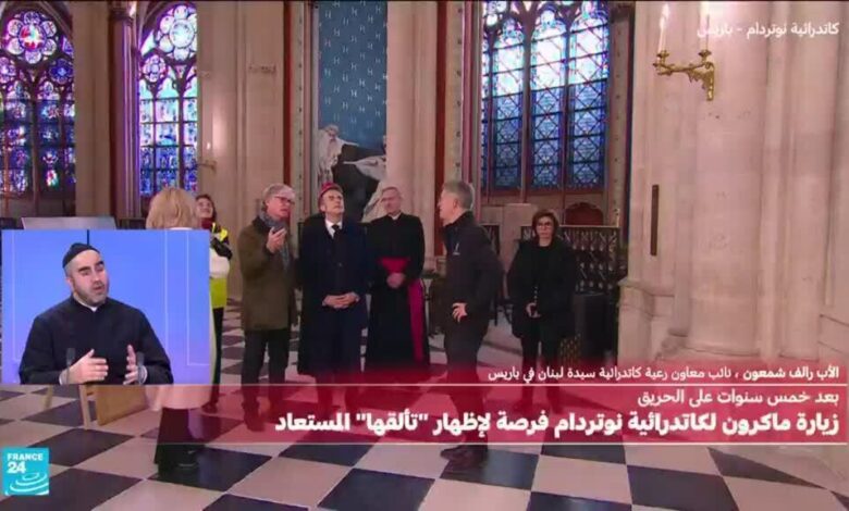 خلال كلمة للرئيس الفرنسي إيمانويل ماكرون الجمعة أثناء زيارته لكاتدرائية نوتردام بباريس قبل أسبوع من الحفل الرسمي لإعادة افتتاحها يوم 7 ديسمبر/كانون الأول، شكر ماكرون المساهمين في إعادة ترميم المعلمة الدينية، قال ماكرون أمام الحرفيين الحاضرين: “كانت نيران نوتردام جرحا وطنيا وأنتم كنتم دواءه من خلال الإرادة والعمل والالتزام… لقد حققتم ما كان يُعتقد أنه مستحيل”.