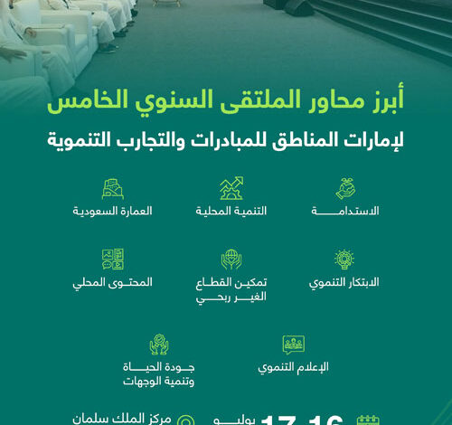تنطلق بالمدينة المنورة اليوم الأربعاء أعمال «الملتقى الخامس للمبادرات والتجارب التنموية بإمارات المناطق»، الذي تُنظّمه إمارة منطقة المدينة المنورة، ويستمر لمدة يومين، بمشاركة عددٍ من الخبراء والمختصين، ومسؤولي الجهات الحكومية؛ بهدف تبادل الخبرات، واستعراض المبادرات