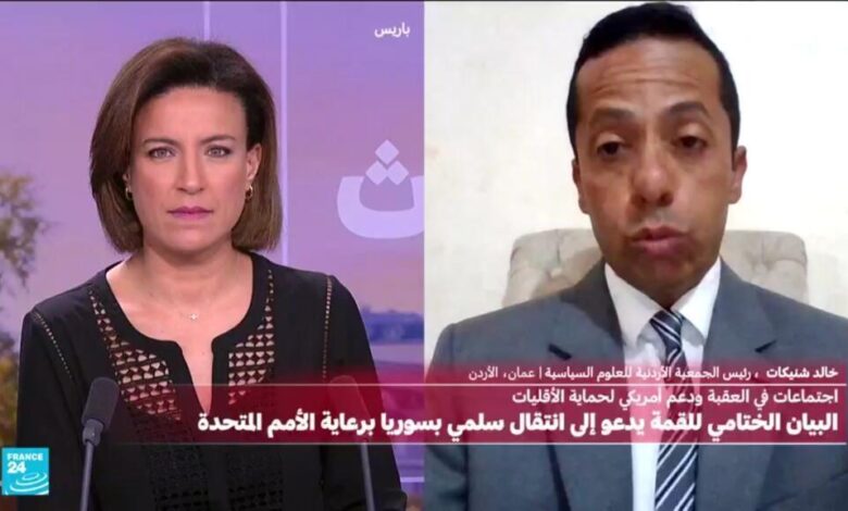 يقرأ لفرانس24 د.خالد شنيكات رئيس الجمعية الأردنية للعلوم السياسية في أهمية اجتماع العقبة بالنسبة للأردن والبلدان المحيطة بسوريا.