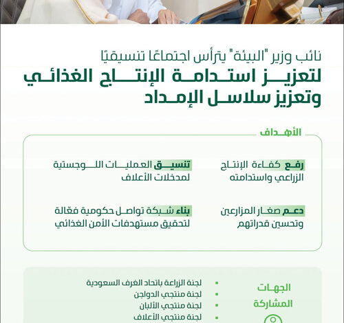 اجتماع تنسيقي لتعزيز استدامة الإنتاج الغذائي وسلاسل الإمداد