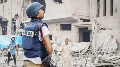 قال مسؤولون بقطاع الصحة الفلسطيني: إن إسرائيل استهدفت مجمع ناصر الطبي في غزة بغارتين مما أدى إلى استشهاد ما لا يقل عن 15 شخصا، بينهم أربعة صحفيين أحدهم يعمل لرويترز. ونددت نقابة الصحفيين الفلسطينيين بالغارتين، وقالت: إن إسرائيل تمارس «حربا مفتوحة على الإعلام الحر بهدف ترويع