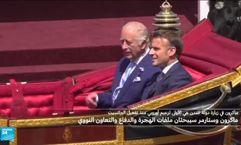 استقبل ملك بريطانيا الملك تشارلز الرئيس الفرنسي إيمانويل ماكرون في قلعة وندسور اليوم الثلاثاء في رحلة تهدف إلى الاحتفال بعودة الروابط السياسيةالوثيقة بين البلدين. وسيكون الحدث الاحتفالي الكبير هو الأول لماكرون الذي يتمتع بعلاقة شخصية جيدة مع الملك. وستكون هذه أول زيارة رسمية لزعيمأوروبي إلى بريطانيا منذ انسحابها من الاتحاد الأوروبي.