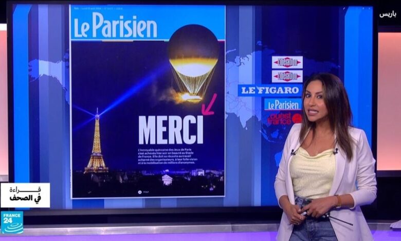 أُسدل الستار على ألعاب باريس الأولمبية، فكيف علقت الصحف الفرنسية والعالمية على التنظيم وحفل الختام؟ “ليبيراسيون” تشيد بحماسة شعبية غير مسبوقة أنست الفرنسيين الأزمات السياسية، وصحيفة “لوفيغارو” تتحدث عن أيام لا تُنسى طبعت الأذهان بزوبعة من الذكريات. ذي إندبندنت البريطانية وضعت على غلافها صورة نجم هولييود “توم كروز” وعنونت الدورة تنتهي بشكل مُذهل. بعض الصحف تتحدث عن أثر متواضع للألعاب على الاقتصاد الفرنسي، وأخرى تركز على كون الألعاب منارة أمل للعالم في وقت حروب وصراعات.