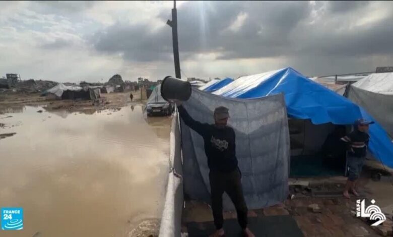 آلاف الخيام تحولت إلى برك مياه بعد أمطار غزيرة أغرقت الملاجئ المؤقتة ودمرت ما تبقى من ممتلكات السكان، وسط بنية تحتية منهارة وخطر متزايد لانتشار الأمراض.