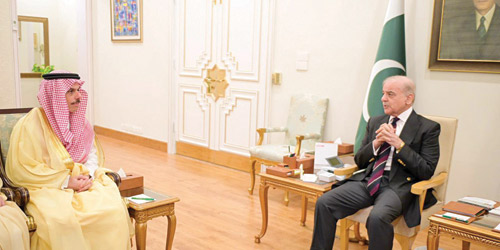 استقبل دولة السيد محمد شهباز شريف رئيس وزراء جمهورية باكستان الإسلامية أمس صاحب السمو الأمير فيصل بن فرحان بن عبدالله وزير الخارجية، وذلك خلال زيارة سموه إلى العاصمة إسلام آباد للمشاركة في الاجتماع الوزاري الرباعي.
