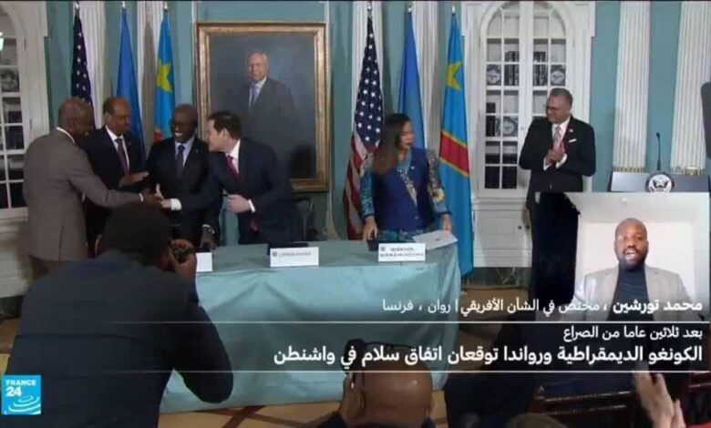 وقعت جمهورية الكونغو الديموقراطية ورواندا اتفاق سلام الجمعة برعاية الولايات المتحدة، وذلك بهدف إنهاء نزاع خلف آلاف القتلى في شرق الكونغو الديموقراطية، في تطور وصفه الرئيس الأمريكي دونالد ترامب بأنه “فصل جديد من الأمل”. ويستند الاتفاق إلى مبادئ وافقت عليها الدولتان في نيسان/أبريل، وتتضمن أحكاما بشأن “احترام وحدة الأراضي ووقف الأعمال العدائية” في شرق جمهورية الكونغو الديموقراطية، بعد الهجوم الذي قادته جماعة إم 23 المسلحة.