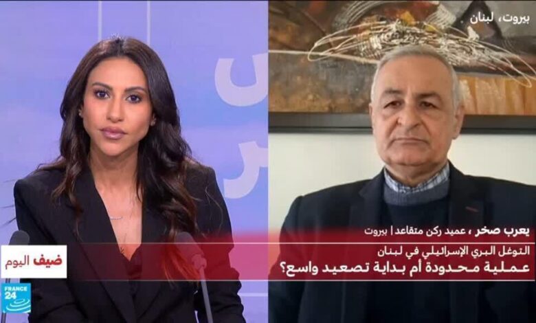 أعلن الجيش الإسرائيلي أنه بدأ في الأيام الأخيرة “نشاطا بريا محددا” في جنوب لبنان في إطار حربه مع حزب الله التي أرغمت أكثر من مليون شخص على النزوح في لبنان وفق السلطات. وأضاف إن اللبنانيين الذين أجبرتهم قواتها على النزوح لن يتمكنوا من العودة إلى ديارهم حتى يتوفر الأمان للإسرائيليين القاطنين قرب الحدود، وذلك مع توغل القوات الإسرائيلية في مناطق جديدة من جنوب لبنان. للحدث عن هذا الموضوع نستضيف في “ضيف اليوم” العميد الركن المتقاعد يعرب صخر.