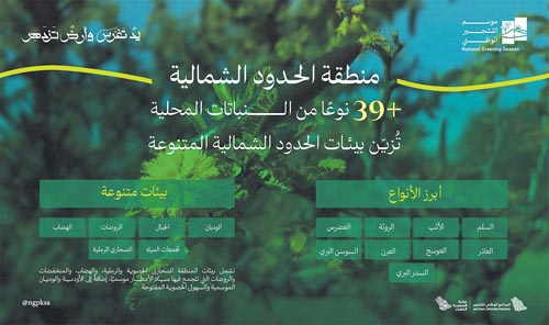 أكّد البرنامج الوطني للتشجيرعن انتشار أكثر من 39 نوعًا من النباتات المحلية الملائمة للتشجير في منطقة الحدود الشمالية؛ مما يعزز من الجهود الوطنية الداعمة لمشاريع التشجير، ويسهم في تنمية الغطاء النباتي، والحد من تدهور الأراضي في المنطقة، وفقًا لمستهدفات مبادرة السعودية الخضراء،