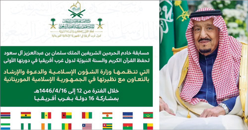 أكملت وزارة الشؤون الإسلامية والدعوة والإرشاد، استعداداتها كافة لتنظيم مسابقة خادم الحرمين الشريفين الملك سلمان بن عبدالعزيز آل سعود – أيده الله – لحفظ القرآن الكريم والسنة النبوية في دورتها الأولى التي تنفذها الوزارة بالتعاون مع وزارة الشؤون الإسلامية والتعليم الأصلي في