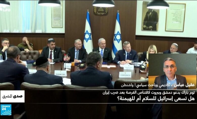 بعد الضربات التي وجهتها الولايات المتحدة للبرنامج النووي الايراني، المبعوث الأمريكي لسوريا المكلف أيضا بالملف اللبناني يدعو دمشق وبيروت لاقتناص الفرصة والعمل على السلام مع إسرائيل، وزير الخارجية الاسرائيلي جدعون ساعر أعرب أيضا عن رغبة حكومته بالسلام مع سوريا ولبنان شرط عدم التنازل عن الجولان المحتل. فهل تسعى إسرائيل بالفعل للسلام العادل؟ أم أنها تريد فرض تطبيع للعلاقات عبر اتفاقات مجحفة تسمح لها بفرض الهيمنة الكاملة على منطقة الشرق الأوسط؟ ضيف صدى المشرق الأكاديمي والباحث السياسي عقيل عباس.