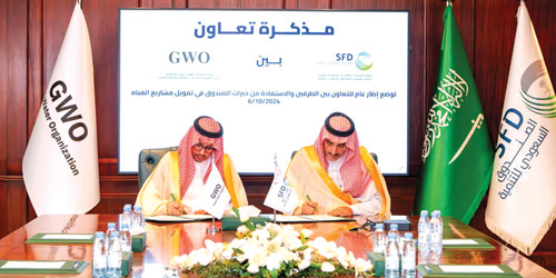 وقّع الرئيس التنفيذي للصندوق السعودي للتنمية سلطان بن عبدالرحمن المرشد، امس، مع رئيس الفريق التأسيسي للمنظمة العالمية للمياه الدكتور فهد بن سعد أبو معطي؛ مذكرة تعاون، لوضع إطار عام للتعاون التنموي الدولي والاستفادة من خبرات الصندوق في تمويل مشاريع المياه حول العالم، بما يسهم