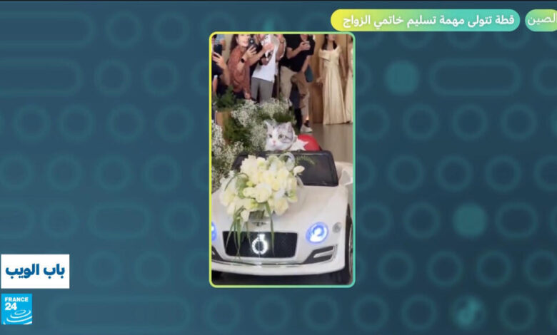الصين.. قطة تتولى مهمة تسليم خاتمي الزواج!