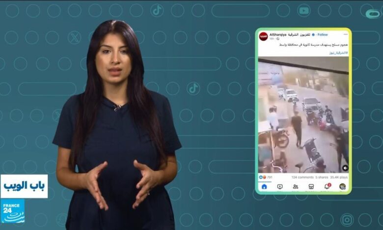 تستعرض هذه الحلقة من باب الويب المواضيع التالية: العراق.. هجوم مسلح على مدرسة، مصر.. أستاذ جامعي يصفع طالبا جامعيا، سوريا.. جرافات تهاجم بسطات الكتب، ليبيا.. فرحة أب وأطفاله باصطياد طائر وفي السعودية.. فتاة تتناول 4 سندويشات في دقيقة.