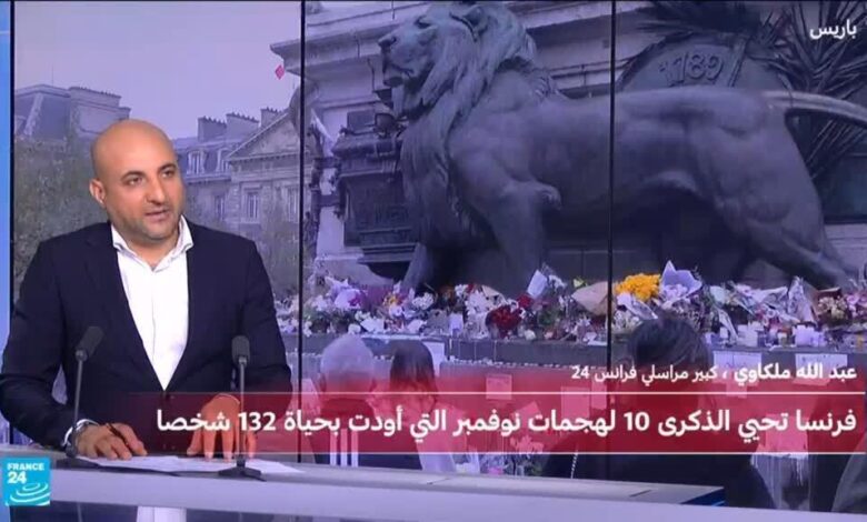 تحيي فرنسا الخميس الذكرى السنوية العاشرة لهجمات باريس التي قتل فيها مسلحون وانتحاريون من تنظيم الدولة الإسلامية 130 شخصا، حيث استهدفوا في ذلك اليوم قاعة “باتاكلان” الشهيرة للى جانب مطاعم ومقاهي. بدأ الهجوم بتفجيرات انتحارية خارج ملعب فرنسا الرياضي حيث كان الرئيس آنذاك فرانسوا هولاند ووزير الخارجية الألماني يشاهدان مباراة دولية ودية لكرة القدم، واستمر الهجوم بإطلاق مسلحين النار في خمسة مواقع أخرى في وسط باريس.