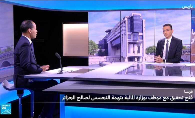 أعلن مكتب المدعي العام في باريس الخميس أن ممثلي النيابة وضعوا موظفا في وزارة المالية قيد تحقيق رسمي للاشتباه في تجسسه لفائدة الجزائر. ويتهم هذا الموظف بتسليم تفاصيل عن طالبي اللجوء الجزائريين، بمن فيهم معارضون، إلى مسؤول في القنصلية الجزائرية في باريس.