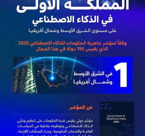 المملكة الأولى شرق أوسطياً وشمال إفريقيا في مؤشر جاهزية الحكومات للذكاء الاصطناعي