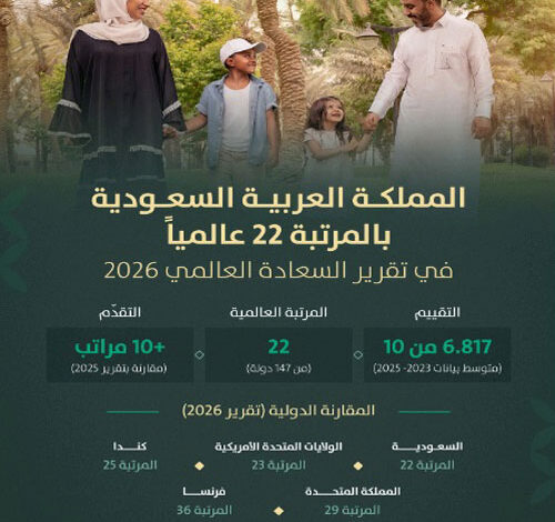المملكة الـ(22) عالمياً في تقرير السعادة العالمي لـ«2026»