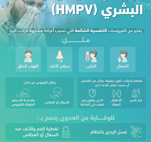 أعلنت هيئة الصحة العامة أن فيروس الميتانيمو البشري (HMPV) من الفيروسات التنفسية الشائعة وأعراضه مشابهة لنزلات البرد ومعظم الحالات تكون خفيفة، وحددت سبل انتقاله والوقاية من العدوى به.