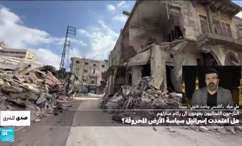 رغم الهدنة لستين يوما وكل الدعوات الإسرائيلية للبنانيين لعدم العودة الآن، بدأ آلاف اللبنانيون بالعودة لمناطقهم التي هجروا منها، رغم قيام إسرائيل بمسح 37 بلدة بشكل كلي جنوبي البلاد بحسب الوكالة الوطنية اللبنانية للإعلام،، في حين تحدثت صحيفة فاينشل تايمز عن محاولة إسرائيل لإنشاء منطقة عازلة عند حدودها، فكيف نفهم مسارعة اللبنانيين للعودة فور دخول وقف إطلاق النار حيز التنفيذ؟ وهل اعتمدت إسرائيل سياسة الأرض المحروقة؟ وماذا عن إعادة الإعمار في بلد يعاني الانهيار الاقتصادي. ضيف “صدى المشرق” الأكاديمي والباحث القانوني علي مراد.