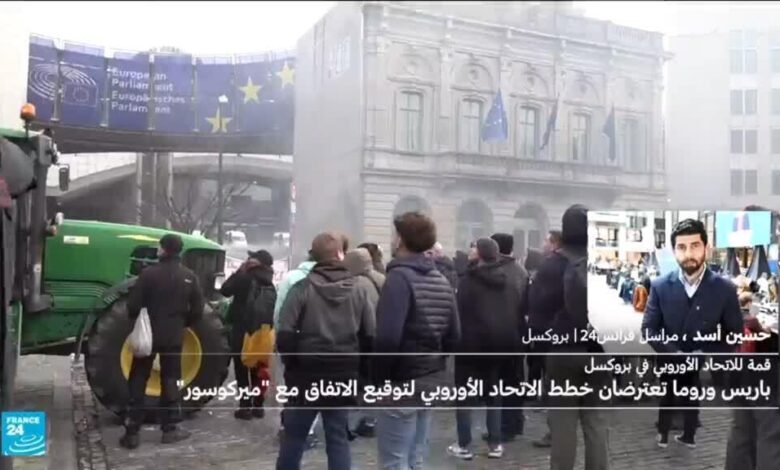 تظاهر الآلاف من المزارعين الغاضبين بالقرب من مقر البرلمان الأوروبي رفضا لاتفاقية التجارة بين الاتحاد الأوروبي ومجموعة “ميركوسور”.