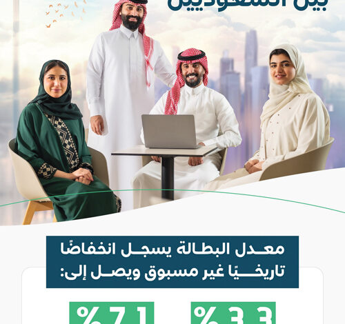 الهيئة العامة للإحصاء: انخفاض معدل البطالة لإجمالي السكان إلى 3.3%