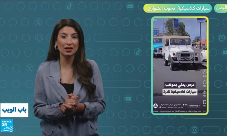 تستعرض هذه الحلقة من “باب الويب” العناوين التالية: الأردن.. ردة فعل امرأة بعد طلاقها تثير الجدل. سوريا.. أسلوب بائع بالترويج لبضاعته يقسم ناشطين. اليمن.. سيارات “كلاسيكية” تجوب الشوارع. لبنان.. زفة عروسين بالتزامن مع وقوع غارة. مصر.. فرحة عفوية رومانسية لزوجين تحت المطر.