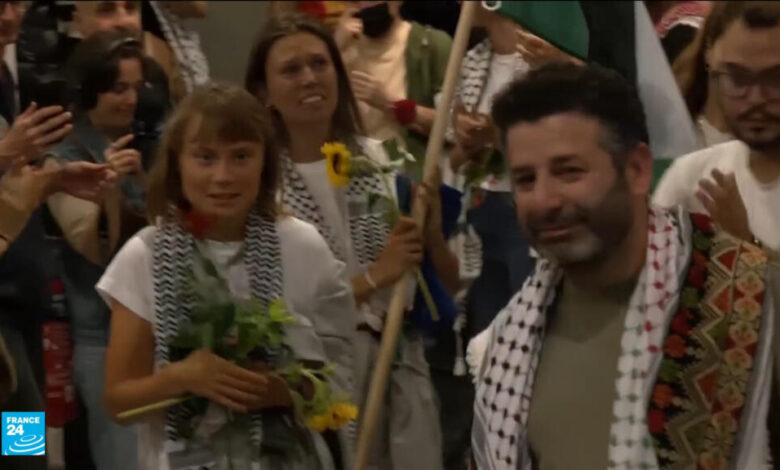 وصلت الناشطة السويدية غريتا تونبري إلى اليونان اليوم الاثنين واستقبلها حشد من المناصرين للفلسطينيين بعد ترحيلها مع مئات النشطاء الآخرين الذين احتجزتهم إسرائيل في عرض البحر ضمن أسطول دولي كان يحاول إدخال مساعدات إلى غزة. وقالت تونبري للحشد في مطار أثينا “دعوني أكون واضحة تماما، هناك إبادة جماعية تجري”. وأردفت تقول “أنظمتنا الدولية تخون الفلسطينيين، فهي عاجزة حتى عن منع أسوأ جرائم الحرب”.