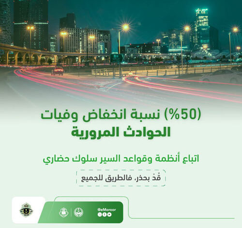 انخفاض وفيات الحوادث المرورية 50 % على الطرق