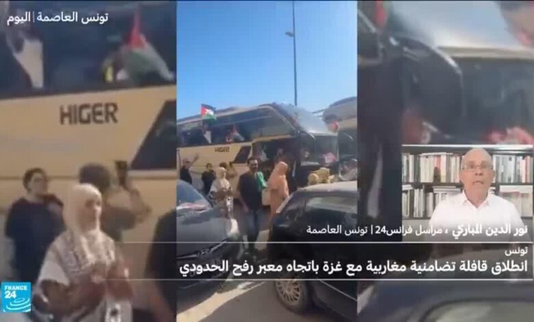 انطلقت، صباح اليوم الاثنين، من وسط العاصمة تونس، قافلة تضامنية مغارببة تضم المئات من النشطاء والسياسيين و النقابيبن والمحامين والإعلاميين  في اتجاه معبر رفح الحدودي بين مصر وغزة لمحاولة فك الحصار عن فلسطيني غزة .