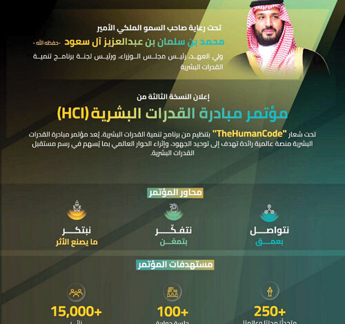 تحت رعاية صاحب السمو الملكي الأمير محمد بن سلمان بن عبدالعزيز آل سعود ولي العهد رئيس مجلس الوزراء رئيس لجنة برنامج تنمية القدرات البشرية -أحد برامج تحقيق رؤية المملكة 2030-، ينظم برنامج تنمية القدرات البشرية النسخة الثالثة من مؤتمر مبادرة القدرات البشرية (HCI) تحت شعار «The