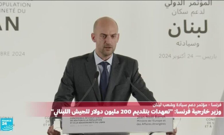 قال وزير الخارجية الفرنسي جان نويل بارو إن مؤتمرا دوليا عقد في باريس لدعم لبنان أسفر عن تعهدات بجمع 800 مليون دولار من المساعدات الإنسانية و200 مليون دولار إضافية للجيش اللبناني.