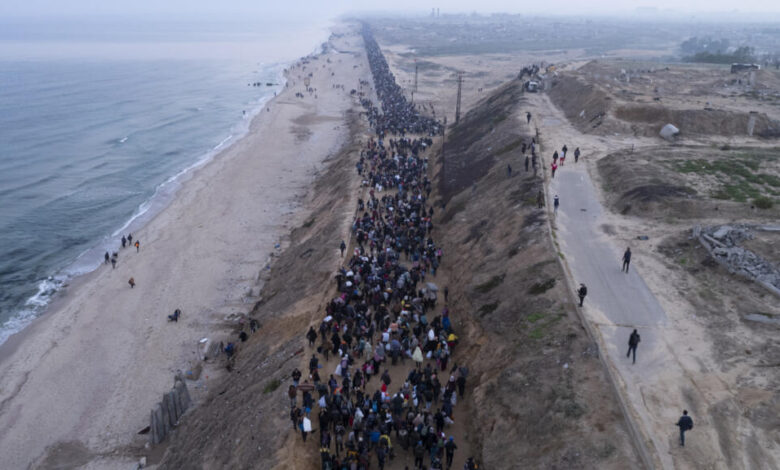 توجه عشرات الآلاف من النازحين الفلسطينيين إلى شمال قطاع الإثنين، وذلك بعد التوصل إلى اتفاق في اللحظات الأخيرة بين إسرائيل وحماس لإطلاق سراح ست رهائن آخرين، بينهم أربيل يهود. ورغم ضبابية المشهد نظرا لما ينتظرهم من الظروف المعيشية التي سيواجهونها في هذه المنطقة التي دمرتها الحرب، يأمل هؤلاء النازحون في لم شملهم مع أحبائهم بعد أشهر طويلة من الفراق.