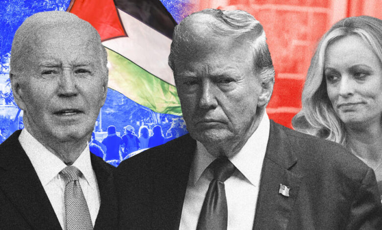 بايدن في مواجهة المظاهرات المساندة للفلسطينيين وترامب أمام عقبة ستورمي دانييلز