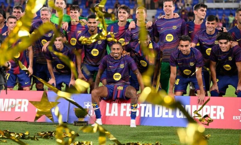 حقق برشلونة فوزا ساحقا على كومو الإيطالي في كأس جوان غامبر السنوية بخماسية سجلها فيرمين لوبيس ورافينيا ولامين جمال، رغم غياب ليفاندوفسكي بسبب الإصابة، بينما واصل الفريق استعداداته لانطلاق الدوري الإسباني بتعزيز صفوفه براشفورد وغارسيا.