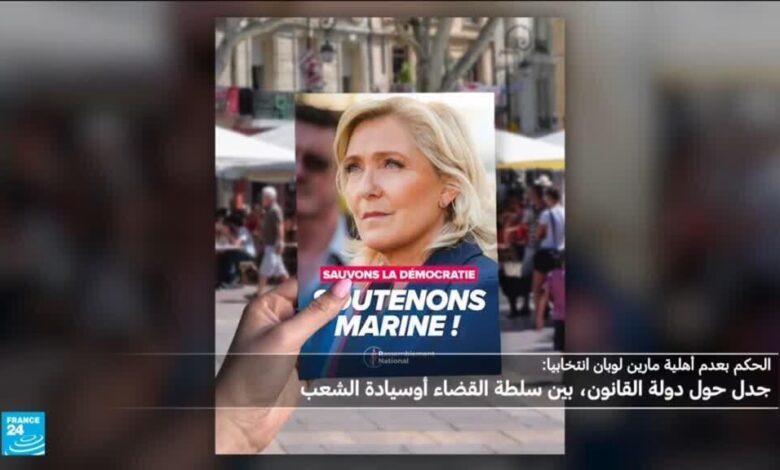 الحكم على زعيمة حزب التجمع الوطني مارين لوبان بعقوبة إضافية لعدم الأهلية الانتخابية لمدة خمس سنوات، أثار جدلا في فرنسا بين مؤيد ومعارض. وبرز فريقان ومفهومان لروح الديمقراطية ودولة القانون: بين من يؤيد سيادة الشعب أولا، وبين من يؤيد سيادة القانون أولا كركيزة للديمقراطية ودولة القانون.