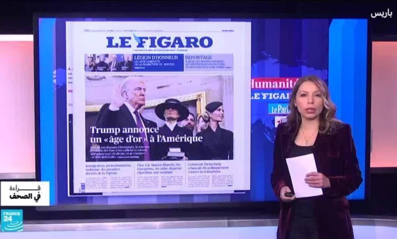 نخصص قراءة في الصحف العالمية للحدث الأبرز وهو مراسم تنصيب الرئيس الأمريكي دونالد ترامب. والذي وعد خلال خطابه بـ”عصر ذهبي” للولايات المتحدة. فكيف علقت أهم الصحف الفرنسية والدولية على خطاب ترامب؟ ما هي الوعود التي أطلقها ترامب العائد إلى البيت الأبيض خاصة فيما يتعلق بالحرب التجارية مع الصين، والرسوم الجمركية على واردات الاتحاد الأوروبي وسياسته في الشرق الأوسط.