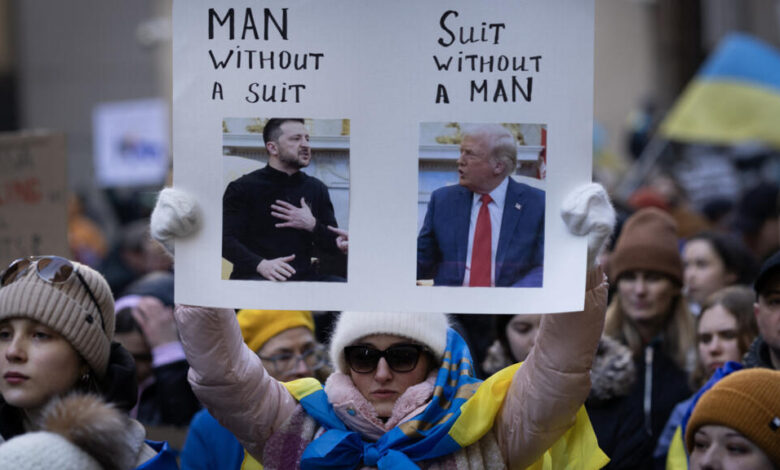 بات الرئيس الأوكراني فولوديمير زيلينسكي، بعد موقعة البيت الأبيض الجمعة، أكثر من أي وقت مضى بين مطرقة دونالد ترامب الذي يريد فرض الأمر الواقع وإنهاء الحرب فورا، وسندان بوتين الذي تستمر قواته في شن هجماتها على أكثر من محور بعد أن سيطر على شرق أوكرانيا. في غضون ذلك، يبقى بيد زيلينسكي ورقة الاتحاد الأوروبي وبريطانيا وكندا، لمنع قطع الدعم عن قوات بلاده، ومحاولة إعادة الرئيس الأمريكي إلى سكة الحلفاء الغربيين مجددا.