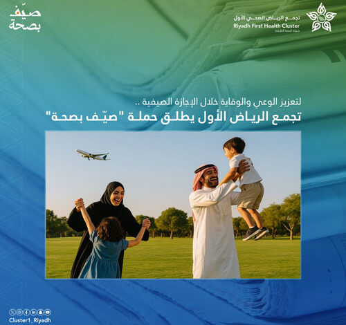 أطلق تجمع الرياض الصحي الأول حملة توعوية تحت شعار «صيّف بصحة»، تزامنًا مع بدء فصل الصيف والإجازة المدرسية؛ بهدف تعزيز الوعي الصحي لدى أفراد المجتمع والوقاية من المشكلات الصحية المرتبطة بموسم الصيف والسفر.